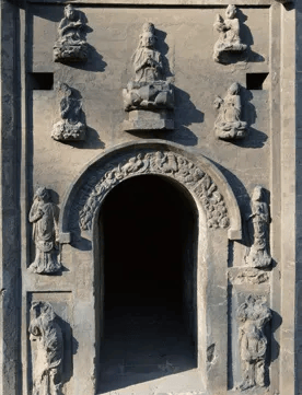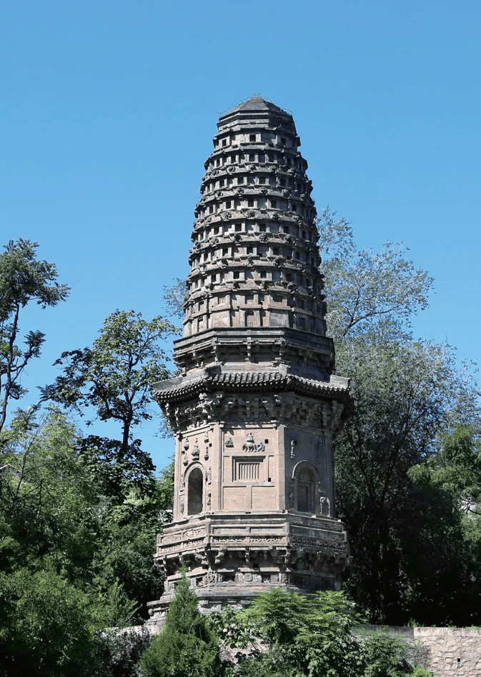 造型均为平面方形,其中6座为密檐式,2座为亭式。这些石塔,以当地特产的汉白玉为材料,精雕细琢而成:塔身正面开方形门洞,门楣雕出火焰式尖拱,门侧天王(力士)守卫;天王威风凛凛,力士恐怖狰狞。塔身侧面多有完整的造塔铭文,有些在塔心室内壁还有精美的浮雕造像。